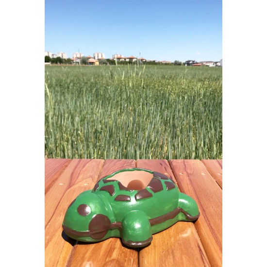 El Yapımı Seramik Skulent Kaplumbağa Saksı